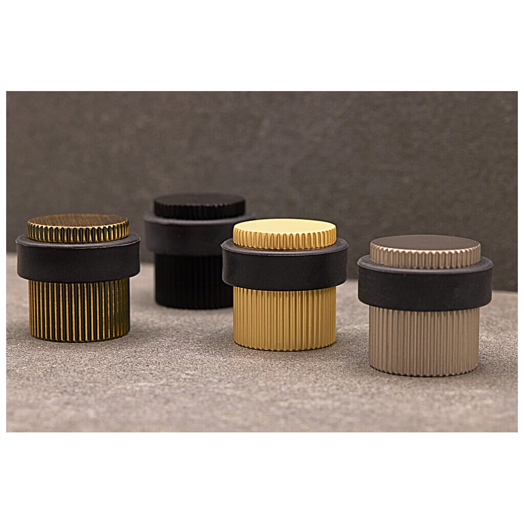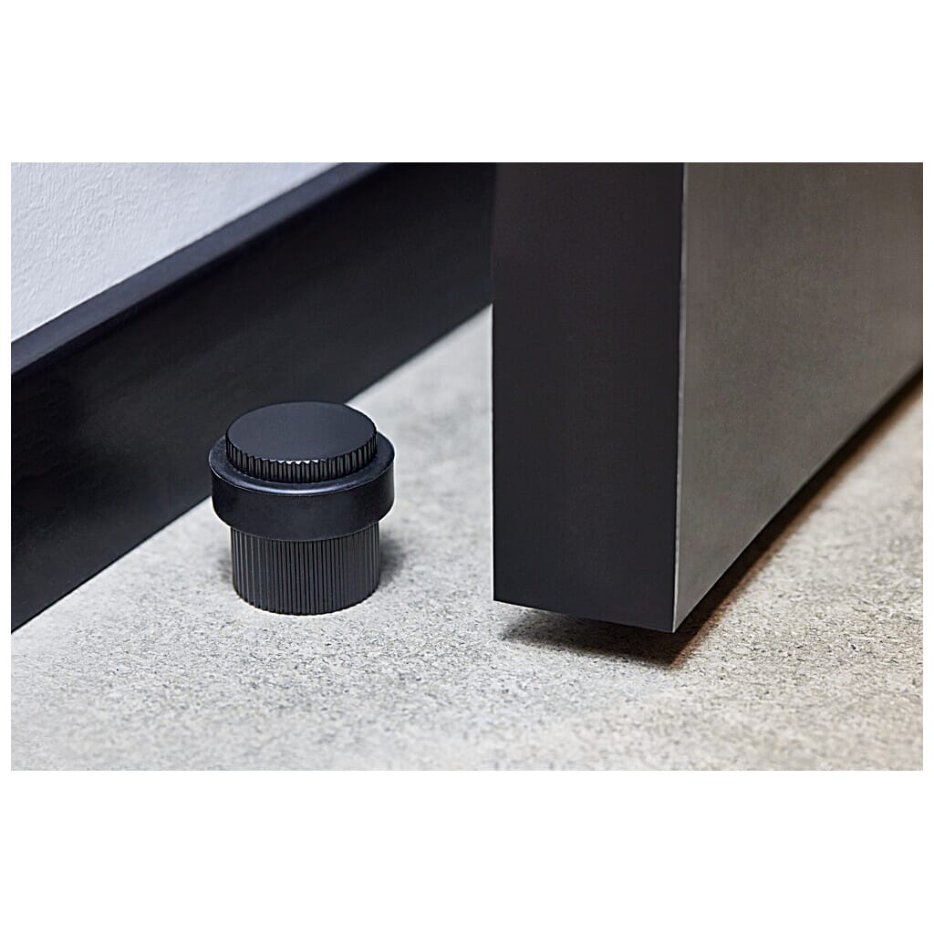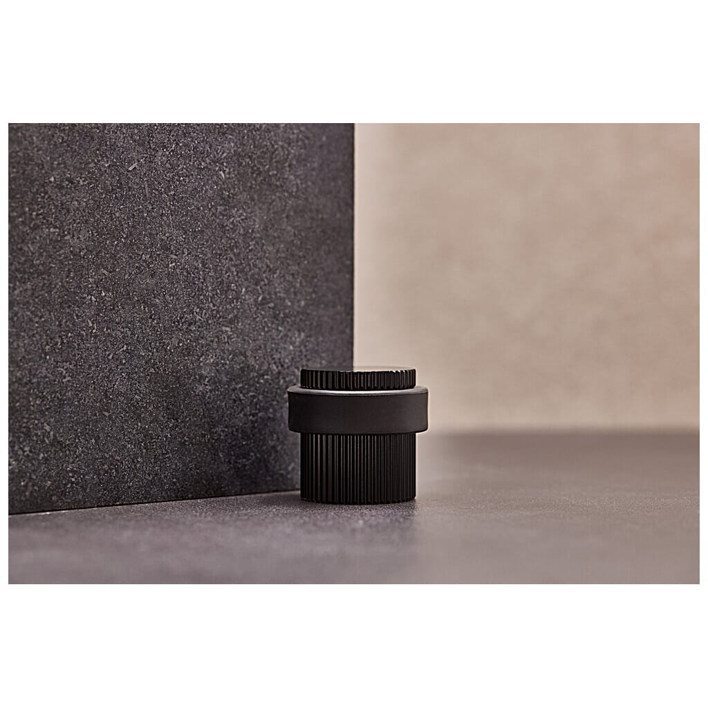 HELIX STRIPE dørstopper i matt svart kombinerer beskyttelse med industrielt design.